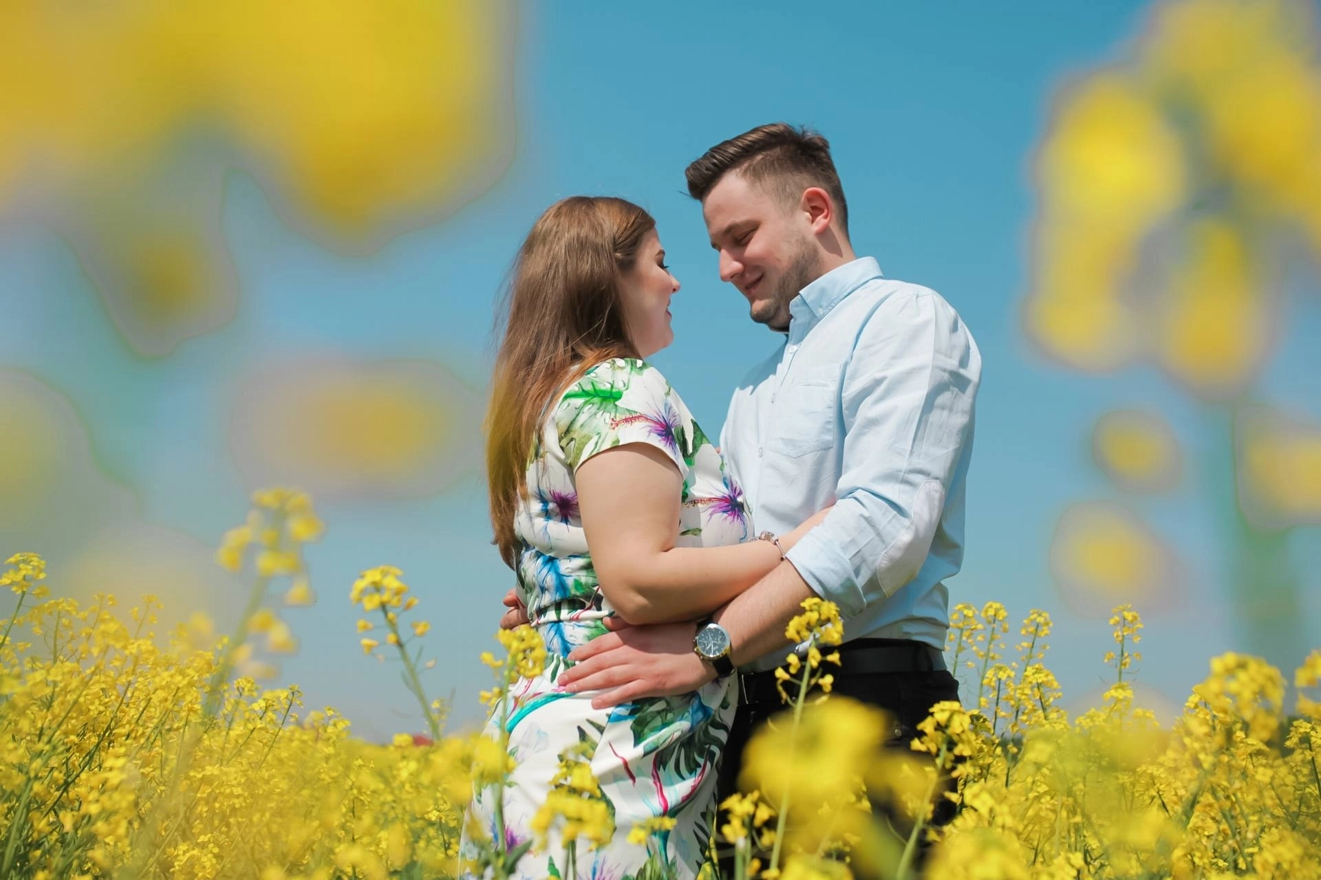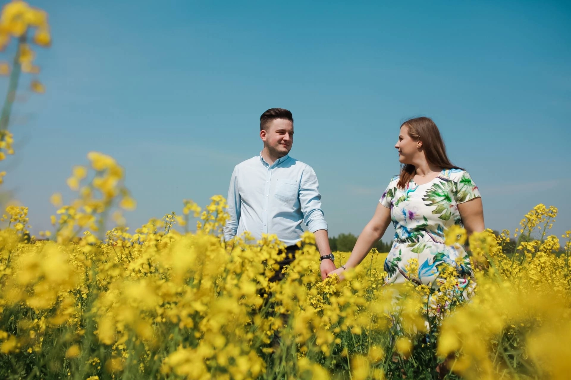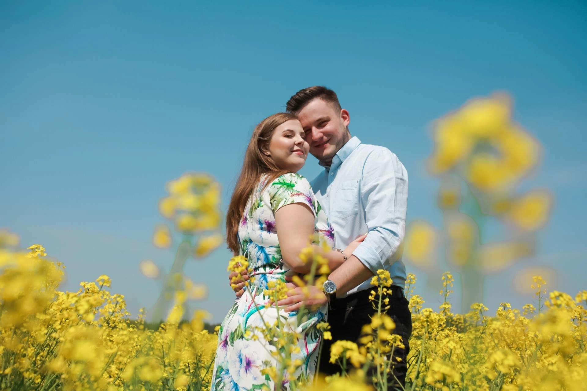 Sesja narzeczeńska w rzepaku