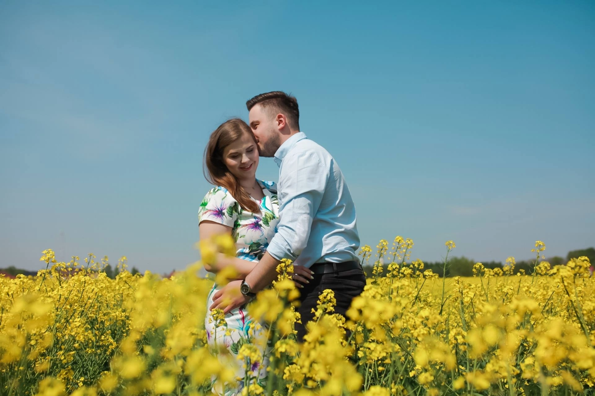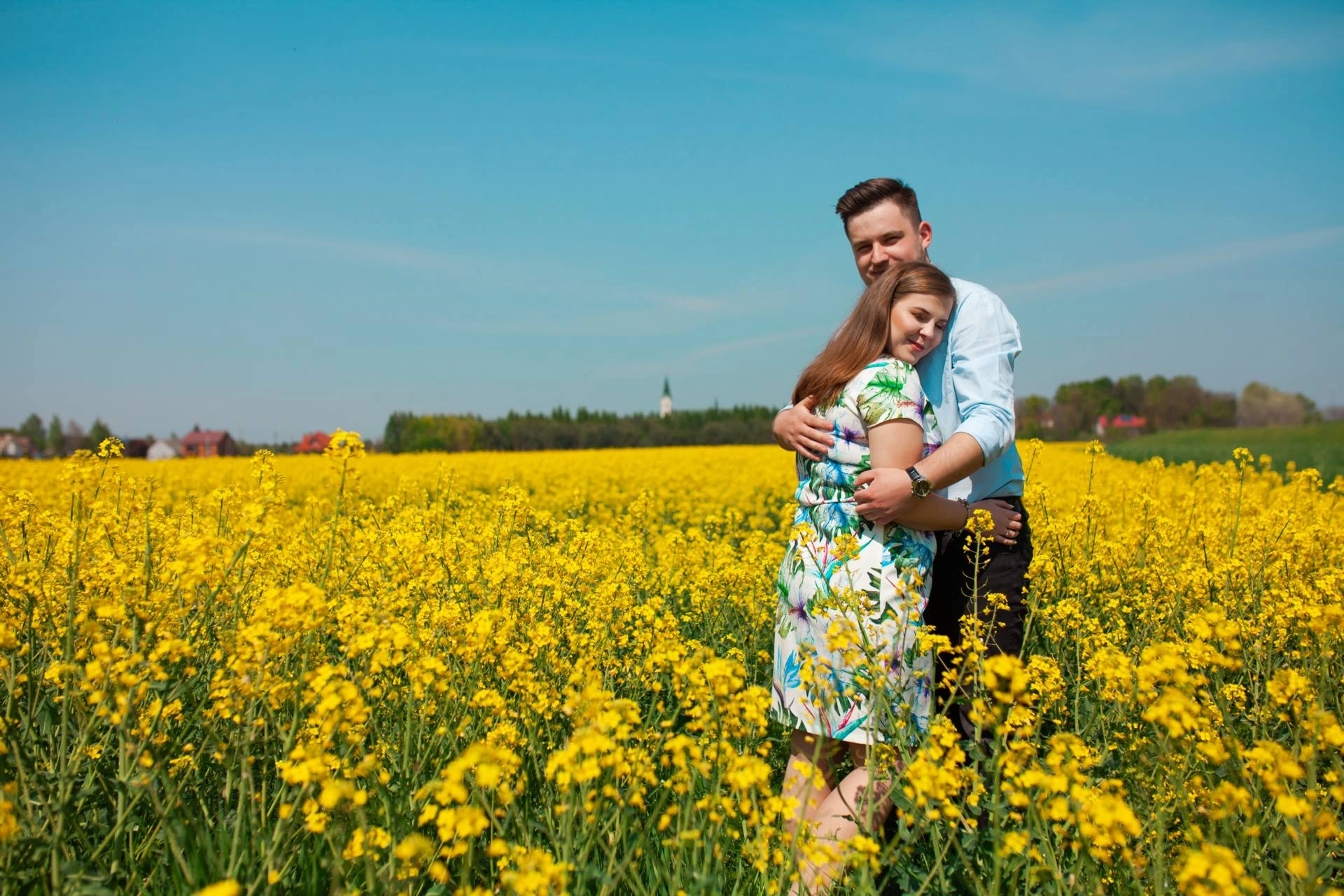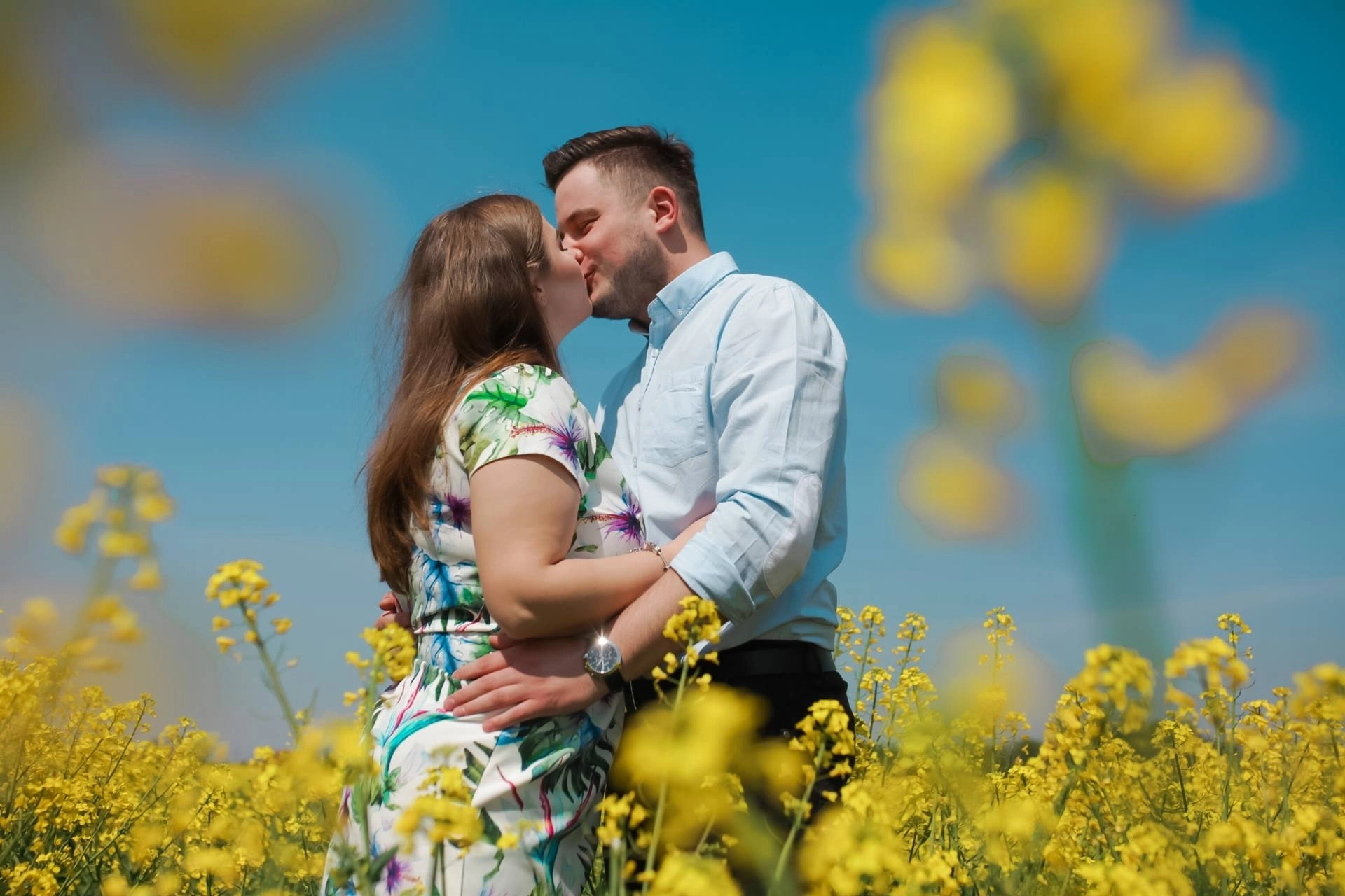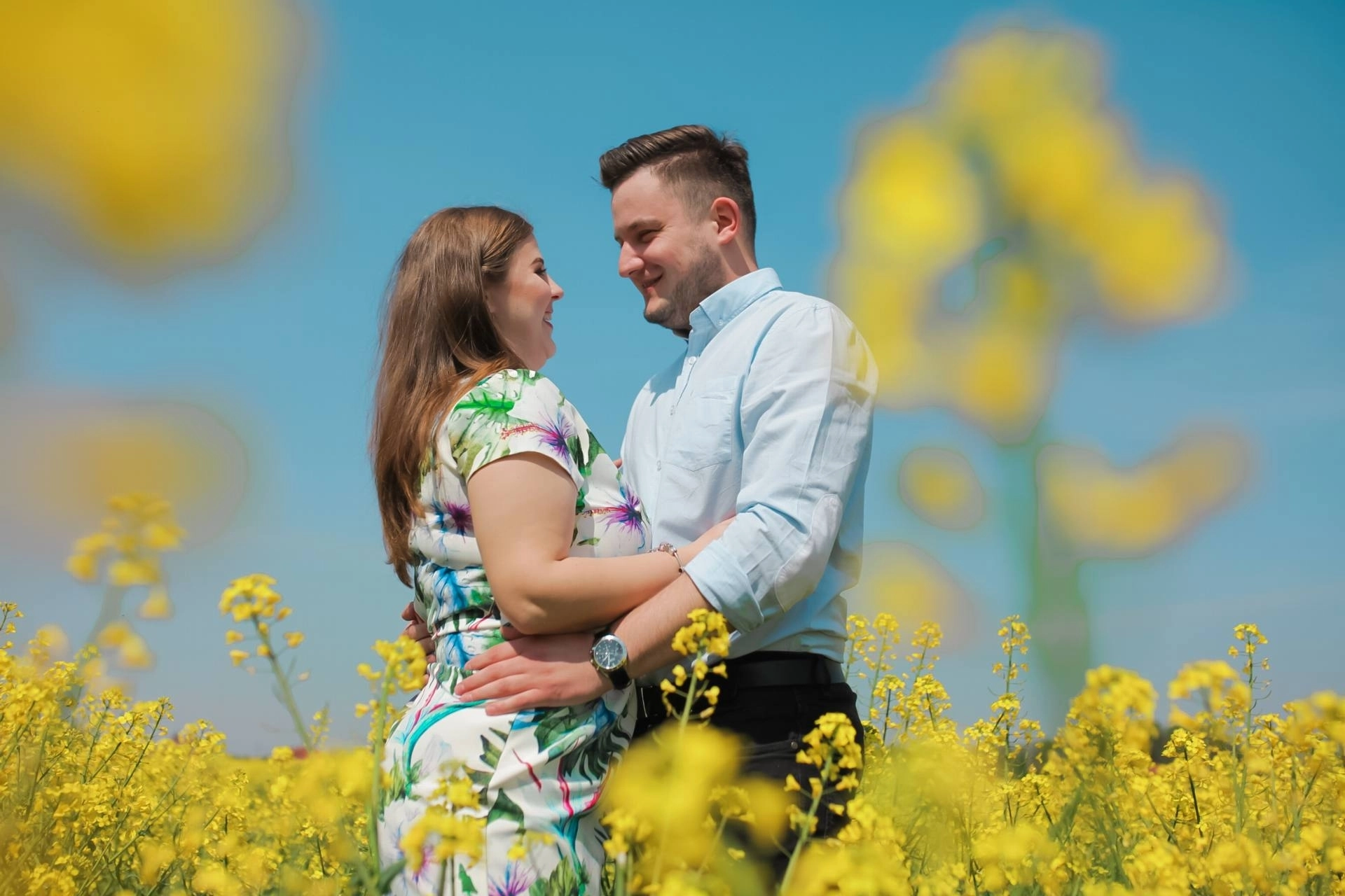Sesja narzeczeńska w rzepaku